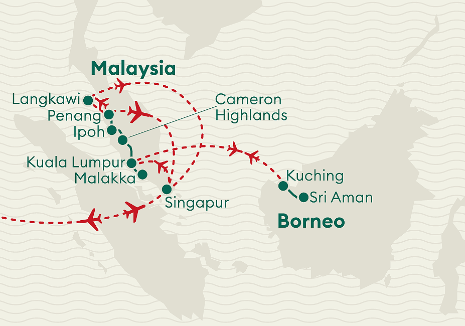 Heute endet Ihre eindrucksvolle Rundreise durch Malaysia und Borneo. Wir hoffen, dass Sie viele unvergessliche Eindrücke, spannende Begegnungen und besondere Erlebnisse mit nach Hause nehmen können.
