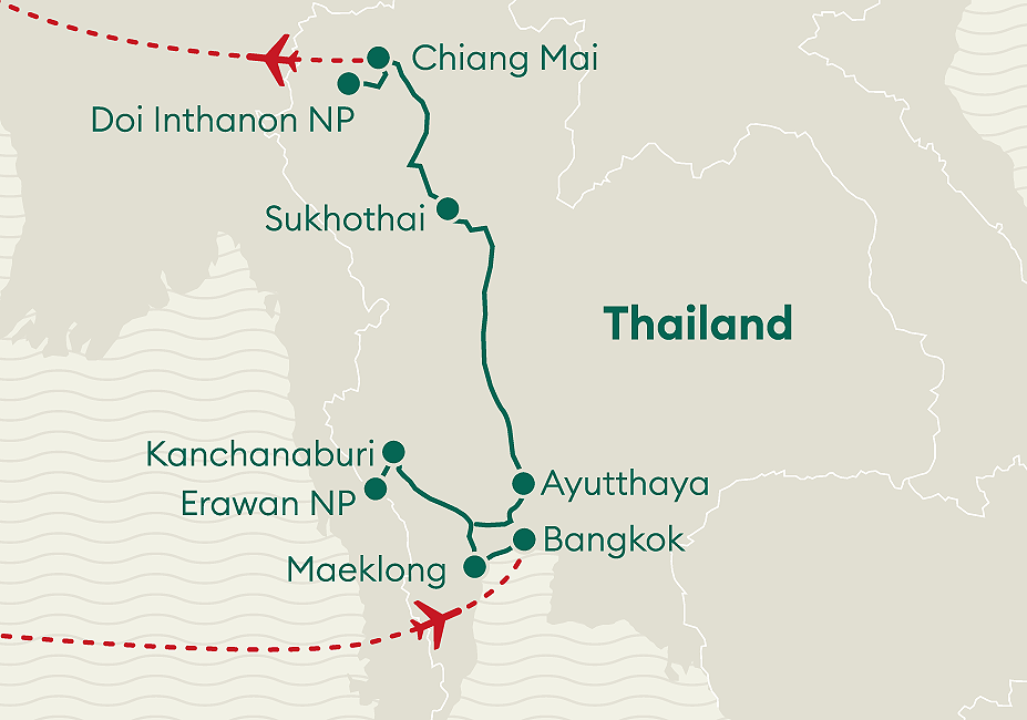 Begleiten Sie uns auf diese Reise durch das facettenreiche Herz Thailands – von den vibrierenden Gassen Bangkoks bis zu den stillen Tempelruinen in Ayutthaya, von schwimmenden Hotels auf dem River Kwai bis in die nebelverhangenen Wälder des Doi Inthanon Nationalparks. Diese Privatreise führt Sie zu den kulturellen, landschaftlichen und spirituellen Höhepunkten des Landes – immer mit einem Hauch von Abenteuer, Komfort und Authentizität.