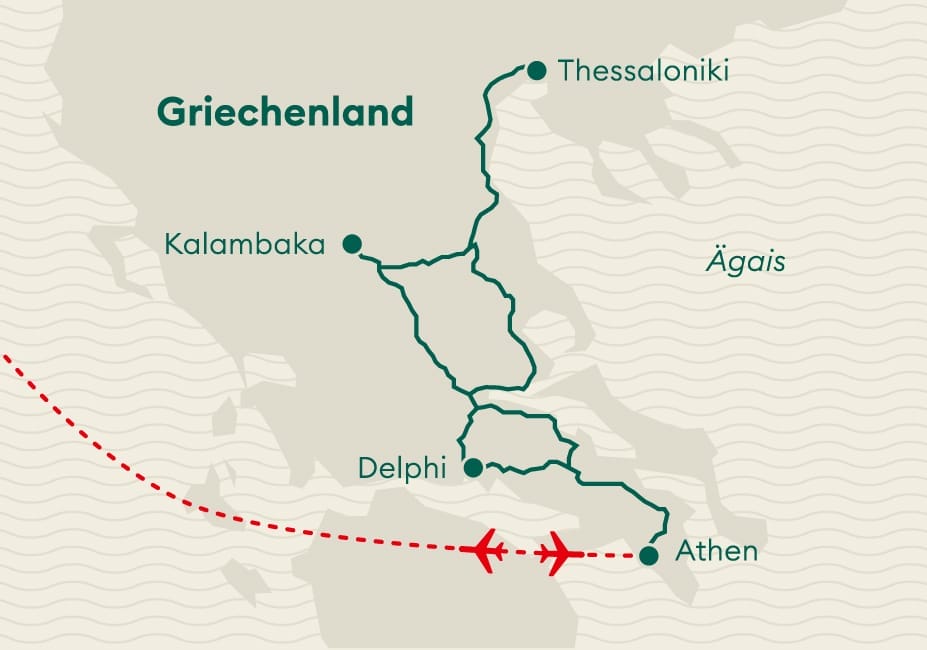 Überragt von der majestätischen Akropolis, verbindet Athen auf faszinierende Weise die glorreiche Vergangenheit mit der lebendigen Gegenwart. Die Akropolis, gekrönt vom ikonischen Parthenon, lässt die Pracht des antiken Griechenlands lebendig werden und gilt als Symbol architektonischer und kultureller Meisterwerke. Diese von der UNESCO zum Weltkulturerbe erklärte Stätte beeindruckt mit ihrer zeitlosen Schönheit. Ergänzt wird das Erlebnis durch nahegelegene Highlights wie die antike Agora und den imposanten Tempel des Olympischen Zeus, die die reiche Geschichte Athens eindrucksvoll widerspiegeln.Kalambaka, das Tor zu den Meteora-Gipfeln, ist eine geschichtsträchtige und traditionelle Stadt im Herzen Griechenlands, deren Ursprünge auf das antike Griechenland unter dem Namen Aeginio zurückgehen. Später wurde sie zu einem wichtigen religiösen Zentrum, in dem die ersten Kathedralen und Kirchen gebaut wurden. Während des Osmanischen Reiches erhielt die Stadt ihren heutigen Namen "Kalambaka", was so viel wie "starke Festung" bedeutet, und wurde zu einem wichtigen Handelszentrum., Kalambaka - Optionale Ausflüge
