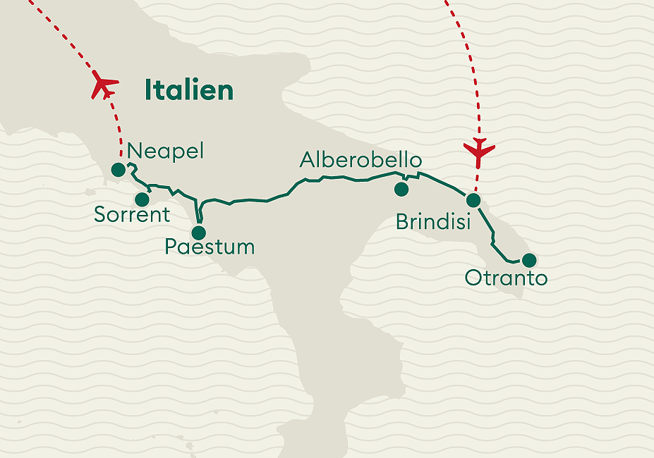 Ciao bella! Gesegnet mit 300 Sonnentagen verzaubern Apulien und der Golf von Neapel mit Italianita in Reinkultur und verkörpern ziemlich genau das Italien, wie es sich Reisende wünschen. Zugleich glänzen die zwei Regionen mit einem hochkarätigen Kulturerbe, dem die Hinterlassenschaft der Natur jedoch in nichts nachsteht.