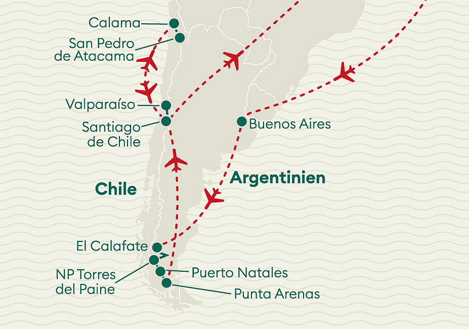 Hinweis für den heutigen Tag Bitte beachten Sie, dass Sie beim Grenzübertritt Ihren Reisepass und Ihr argentinisches Ausreiseformular bereithalten müssen. Die Fahrzeuge werden gewechselt. Ihre Englisch sprechende Reiseleitung vor Ort erwartet Sie nach der Einreise in Chile.