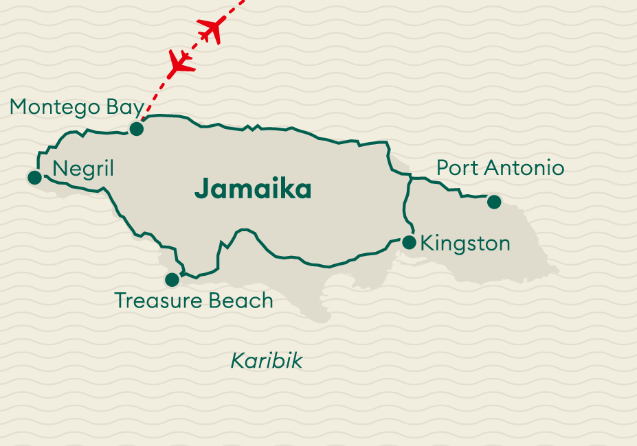 Beim gemeinsamen Abendessen in einem lokalen Restaurant stimmen Sie sich auf die Reise ein. (Abendessen zahlbar vor Ort) Welcome to Jamaica!